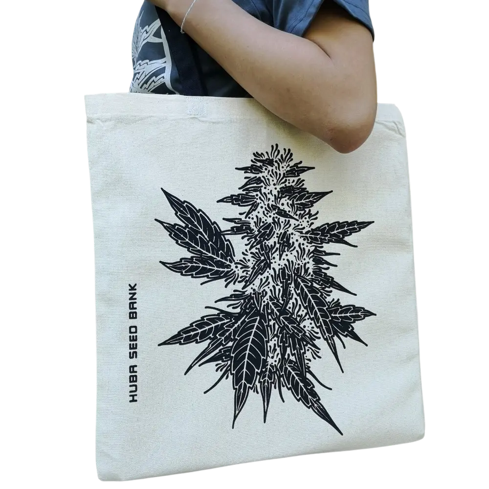 A Vászontáska Cannabis virággal tökéletes társ a mindennapokban, legyen szó bevásárlásról, strandolásról vagy városi sétáról. Ez a természetes színű, fekete fülű táska nemcsak praktikus, hanem kifejező is – egy stílusos eszköz, amellyel megmutathatod, ki vagy. A táskát egy kézzel nyomott cannabis virág minta díszíti, amely vízbázisú festékkel készült, így környezetbarát módon emeli ki az egyediségét.